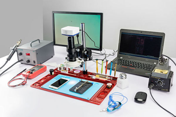 Our technical workshop is fully kitted out, with rubberised flooring to prevent damage from static, shrink machines to properly reseal phones after a repair (properly waterproofed), oscilloscopes for diagnostic testing & every kind of spare part you can imagine